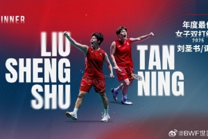 體育資訊12月15日訊 2025年世界羽聯年度最佳運動員獲獎名單公布,劉圣書/譚寧當選年度最佳女子雙打組合。
