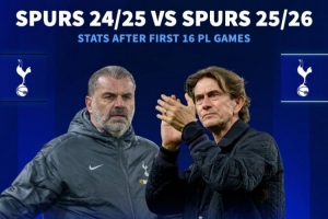 體育資訊12月16日訊 熱刺在本賽季英超表現(xiàn)低迷,新帥弗蘭克執(zhí)教未能達(dá)到預(yù)期,《轉(zhuǎn)會(huì)市場(chǎng)》統(tǒng)計(jì)顯示熱刺的表現(xiàn)還不及上賽季同期。