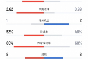 體育資訊12月16日訊 曼聯對陣伯恩茅斯的英超聯賽正在進行中,曼聯半場2-1領先,以下是兩隊數據對比。