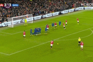 體育資訊12月16日訊 英超第16輪,曼聯主場迎戰伯恩茅斯,比賽第77分鐘,B費任意球直接破門,曼聯3-3扳平比分。