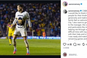 墨西哥美洲獅與拉姆塞解約,拉姆塞社媒寫道:“我想感謝墨西哥人民對(duì)我的友善與慷慨,讓我和我的家人在墨西哥城感受到如此溫暖的歡迎。我還要特別感謝主教練、教練組,尤其是醫(yī)療團(tuán)隊(duì),在我受傷的艱難時(shí)期給予我的幫助。在他們的支持和努力下,我恢復(fù)了狀態(tài),為接下來的比賽做好了準(zhǔn)備,期待為美洲獅貢獻(xiàn)自己的最好表現(xiàn)。”