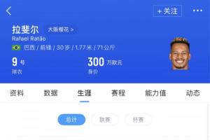 拉唐現年30歲,上賽季租借效力于大阪櫻花,出場44次打入23球4助攻,目前他的德轉身價是300萬歐元。