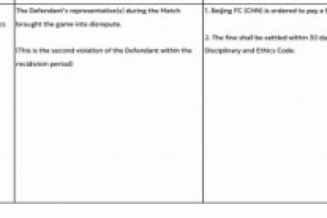 亞足聯官方表示,國安的行為損害比賽聲譽,違反亞足聯紀律和道德準則第50.1條,這是國安第二次違規,對國安處以6250美元罰款,罰款應自本決定送達之日起30日內支付。