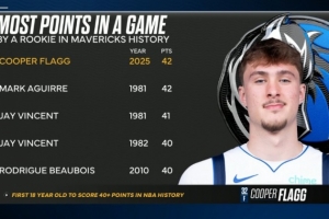 獨行俠隊史新秀單場得分榜: