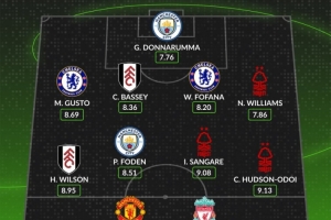 中場:哈里·威爾遜(富勒姆)、福登(曼城)、桑加雷(諾丁漢森林)、奧多伊(諾丁漢森林)