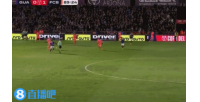 弗賴堡球員橫傳至門前,特雷烏跟進(jìn)推射,球偏出球門