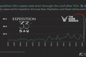 據Alinea Analytics數據分析顯示,該作在TGA奪獎后,每日銷量立即飆升至此前的6倍。頒獎禮結束后,游戲累計新增銷量超20萬套,總銷量正式突破600萬套大關。