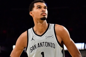 文班亞馬替補出戰,他首節出戰05分13秒,4投1中,三分1投0中、沒有罰球,拿到2分2籃板,正負值-6。
