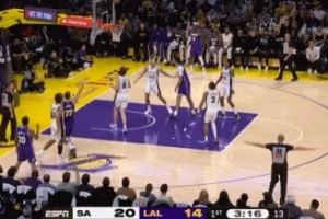 GIF-東契奇單打奧利尼克出手打進,但裁判吹提前犯規,不是2+1,只有兩罰