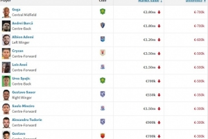 體育資訊12月17日訊 德轉更新中超球員身價,古加、布爾克成為中超身價下降最多的球員,兩人均下降70萬歐。