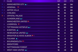 體育資訊12月17日訊 Squawka統(tǒng)計去除VAR判罰錯誤后的英超積分榜情況,曼城、阿森納排名前二。