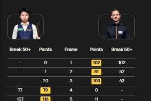 體育資訊12月18日訊 斯諾克蘇格蘭公開賽32進16輪次,江俊4-3擊敗吉爾伯特晉級16強。