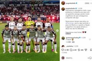 弗拉門戈中場若日尼奧社媒曬出首發球員的合照,配文:“我們奮力拼搏,傾盡全力,雖然帶著些許遺憾踏上歸途,但仍對迄今取得的成就感到無比自豪。”