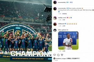 體育資訊12月18日訊 巴黎在洲際杯決賽點球擊敗弗拉門戈,努諾·門德斯首發踢滿全場。