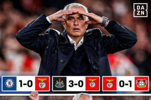 穆里尼奧時隔5年半回歸歐冠,遭遇歐冠3連敗,先后客負切爾西和紐卡、主場輸給勒沃庫森,丟5球一球未進。