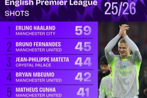 體育資訊12月19日訊 數據機構squawka統計了本賽季英超射門和射正次數榜,哈蘭德同時領跑,B費射門第二多、姆伯莫射正第二多。