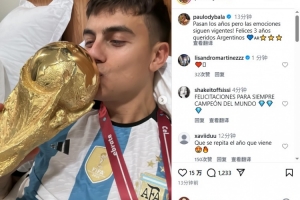 體育資訊12月19日訊 迪巴拉今天更新Instagram,紀念阿根廷世界杯奪冠三周年。