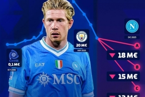 德轉(zhuǎn)預(yù)熱德布勞內(nèi)最新身價(目前2000萬歐)