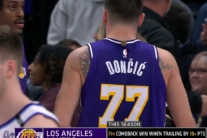 本場比賽,湖人最多落后10分,這是他們本賽季第七次在落后10+的情況下逆轉取勝,聯盟第二多。