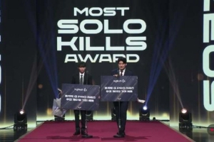 體育資訊12月19日訊 HLE上單Zeus獲得單殺王獎項,Gumayusi代領獎: