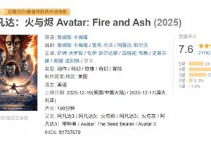體育資訊12月19日訊?備受影迷期待的卡梅隆新電影《阿凡達:火與燼》(《阿凡達3》)已于今日正式上映!截止至發(fā)稿時,本作的豆瓣評分已正式出爐,獲得了7.6分的評價!