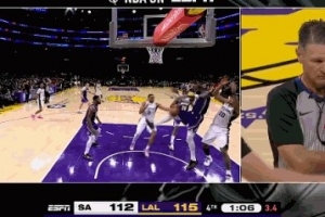 尚帕尼三分不中籃板混戰出界&吹給馬刺球權 湖人挑戰成功拿回球權