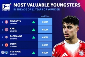 體育資訊12月19日訊 《轉會市場》今日更新了德甲球員身價,并統計了德甲U21球員身價榜。