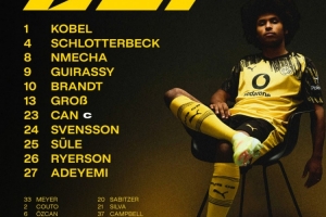 1-科貝爾、4-施洛特貝克、8-恩梅查、9-吉拉西、10-布蘭特、13-格羅斯、23-埃姆雷·詹、23-斯文森、25-聚勒、26-萊爾森、27-阿德耶米