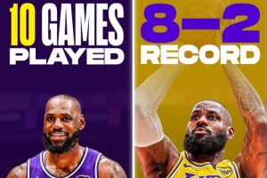 詹姆斯復出之后,湖人取得8勝2負的戰績,他個人的表現也逐漸提升。復出前五場比賽,詹姆斯場均出戰32.3分鐘拿到15.2分4.0籃板7.0助攻,三項命中率46/33/52%;后五場場均35.8分鐘砍下22.0分7.8籃板7.6助攻,命中率50/37/82%。