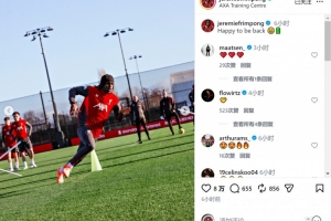 弗林蓬加盟利物浦以來兩度遭遇傷病,目前他已經恢復訓練,弗林蓬社媒曬出訓練照片,配文:“很高興回歸。”