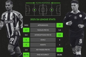 體育資訊12月20日訊 切爾西即將在英超焦點戰客戰紐卡,whoscored也對比了兩隊中場核心本賽季聯賽關鍵數據。