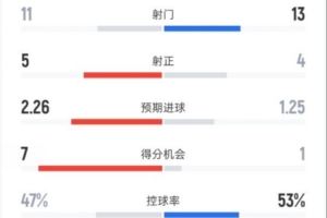 全場比賽數據如下: