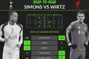 哈維·西蒙斯(熱刺):8次首發、5次替補,1球、2助攻,場均1.1射門、0.6關鍵傳球、0.8過人、傳球成功率82.9%,獲評6.64分