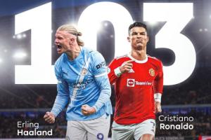 哈蘭德在英超聯(lián)賽中用114場比賽就打入了104球,在英超進(jìn)球數(shù)上正式超越了C羅的103球(236場)!