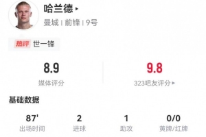 體育資訊12月21日訊 曼城在本輪英超對(duì)陣西漢姆聯(lián),哈蘭德本場(chǎng)數(shù)據(jù)如下:
