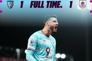 體育資訊12月21日訊 本輪英超焦點戰,伯恩利在客場1-1絕平伯恩茅斯,布羅亞第90分鐘為客隊打進絕平球。