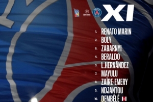 巴黎首發:1-雷納托·馬林、2-大衛·博利、6-扎巴爾尼、4-貝拉爾多、3-盧卡斯·埃爾南德斯、7-馬尤盧、8-扎伊爾·埃梅里、5-恩賈恩圖、10-登貝萊、9-貢薩洛·拉莫斯、11-杜埃