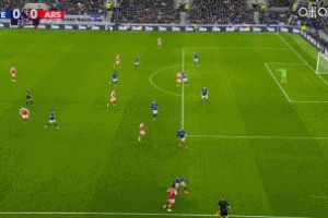 比賽第23分鐘,廷伯傳中,埃弗頓后衛奧布萊恩在小禁區內疑似推倒了搶點的約克雷斯,但裁判并未對此進行判罰,給了阿森納角球;隨后的角球中奧布萊恩手球送點,約克雷斯點射破門。