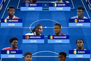 中場(chǎng):阿迪格拉(科特迪瓦,2200萬(wàn))、安古伊薩(喀麥隆,2700萬(wàn))、杜庫(kù)雷(馬里,1500萬(wàn))、迪奧(塞內(nèi)加爾,3000萬(wàn))