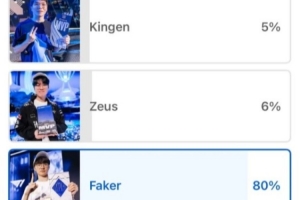 2.7萬人的投票中,DRX上單Kingen僅占5%,Faker高達80%