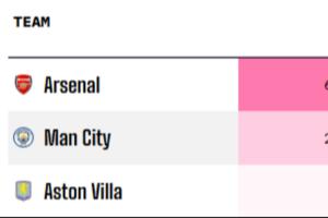 數據機構Opta的超級計算機給出了最新的英超奪冠概率,阿森納68.17%依舊領跑,曼城25.65%,維拉4.84%,利物浦、切爾西、曼聯等5隊則不到1%,其余球隊奪冠概率為0。