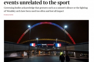 英足總、英超聯賽和英格蘭足球聯賽成立了“世界事件工作組”(WEWG),以指導英格蘭足球對重大世界事件的反應。除非事件與足球有直接關聯,否則聯賽將不會舉行默哀儀式,也不會點亮溫布利球場的拱門。