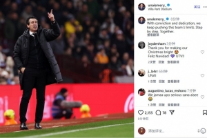 體育資訊12月22日訊 今天凌晨,維拉在英超主場2-1擊敗曼聯,球隊主帥埃梅里賽后在Instagram發文慶祝勝利。