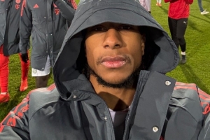 奧利塞當(dāng)選全場最佳球員,賽后他在場內(nèi)進行自拍,仍是一臉嚴肅。