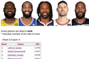 NBA現(xiàn)役球員只有四人籃板比他多,他們是詹姆斯11793、莊神11231、小喬丹10795、武切維奇10413。