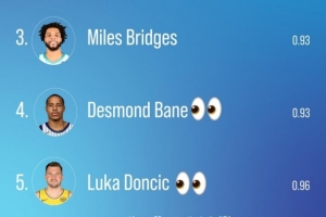 體育資訊12月22日訊 數據專家Kirk Goldsberry曬出了本賽季至今平均每次跳投得分最少的球員倒數前五榜單,具體如下: