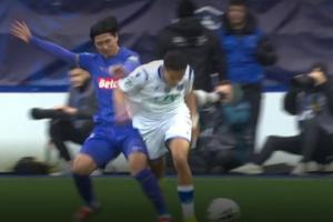 比賽第34分鐘,南野拓實在與歐塞爾球員的一次對抗中撞到左膝,隨后倒地不起被擔架抬出場外,期間南野拓實一直雙手掩面,神情相當痛苦。