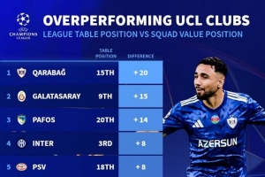 體育資訊11月6日訊 德國轉(zhuǎn)會市場根據(jù)球隊目前歐冠排名與陣容身價排名的差異,列出本賽季歐冠表現(xiàn)超出預(yù)期球隊榜單,卡拉巴赫居首。