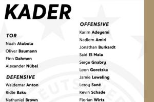 進攻端:阿德耶米(多特)、阿米里(美因茨)、伯卡特(法蘭克福)、馬拉(科隆)、格納布里(拜仁)、格雷茨卡(拜仁)、勒威林(斯圖加特)、薩內(加拉塔薩雷)、沙德(布倫特福德)、維爾茨(利物浦)、沃爾特馬德(紐卡)