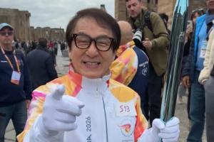 體育資訊12月23日訊 2026米蘭冬奧會火炬來到龐貝古城進行傳遞,71歲成龍擔任火炬手。
